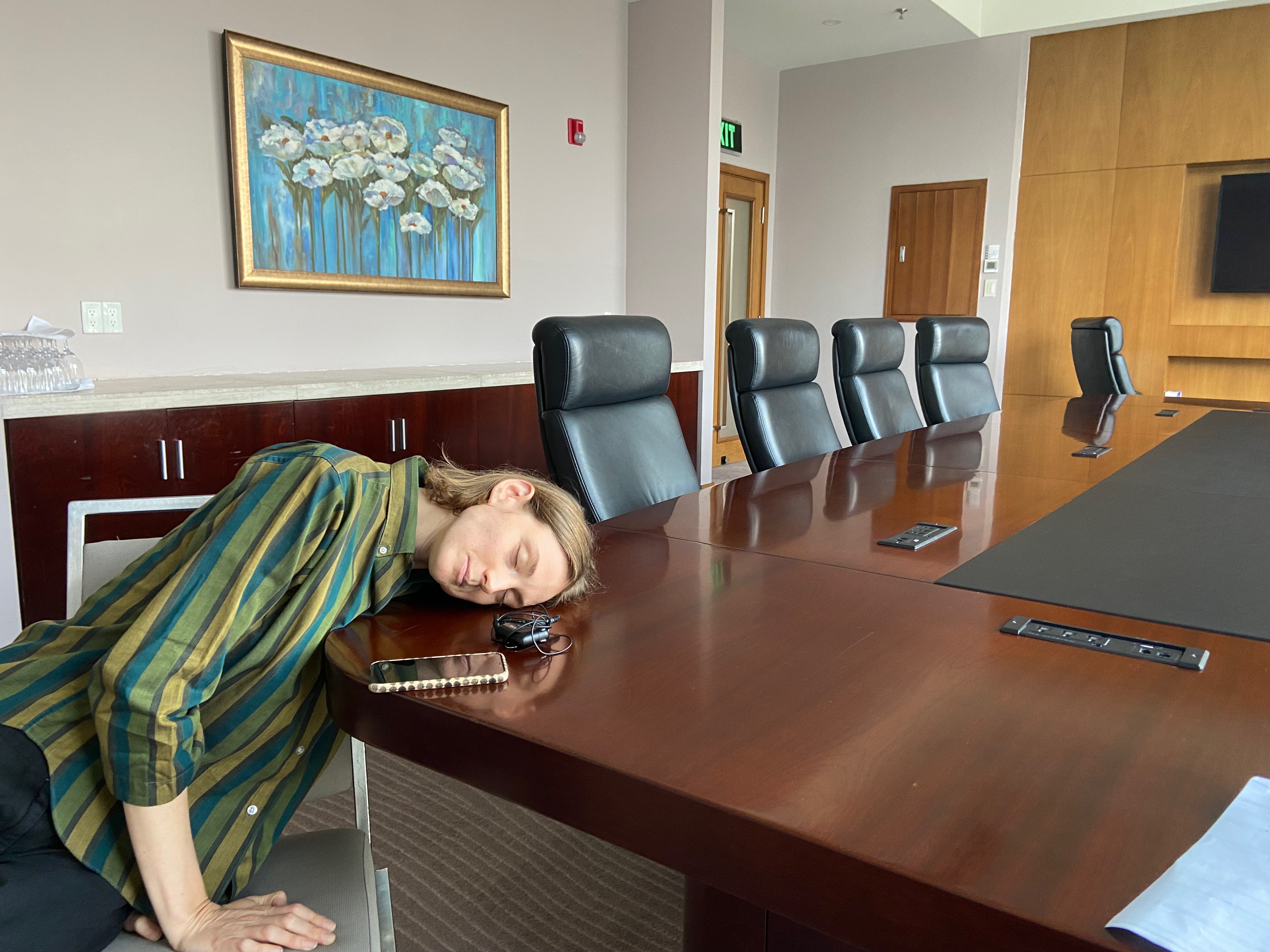 We shot these interviews in the conference room at the Arnhold Institute. This room had been used as a set for NBC’s Law and Order. It is a super cool old room with warm wood paneling and perfect light from giant north-facing windows. But even though it is 5 stories up, when the kids at the school next door went out for recess it sounded like they were in the room with us. We managed though.